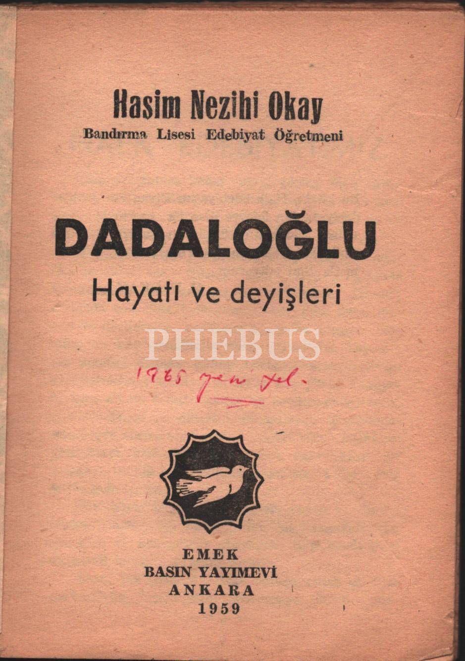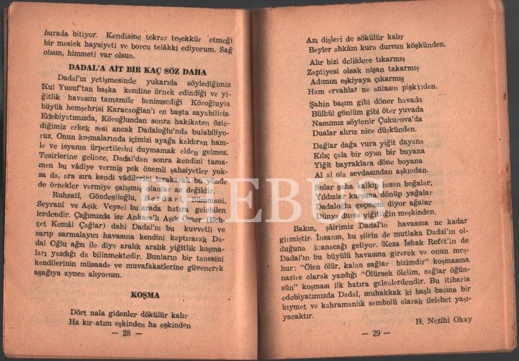 DADALOĞLU, Hayatı ve Deyişleri, Haşim Nezihi Okay, Emek Basım Yayımevi, 1959