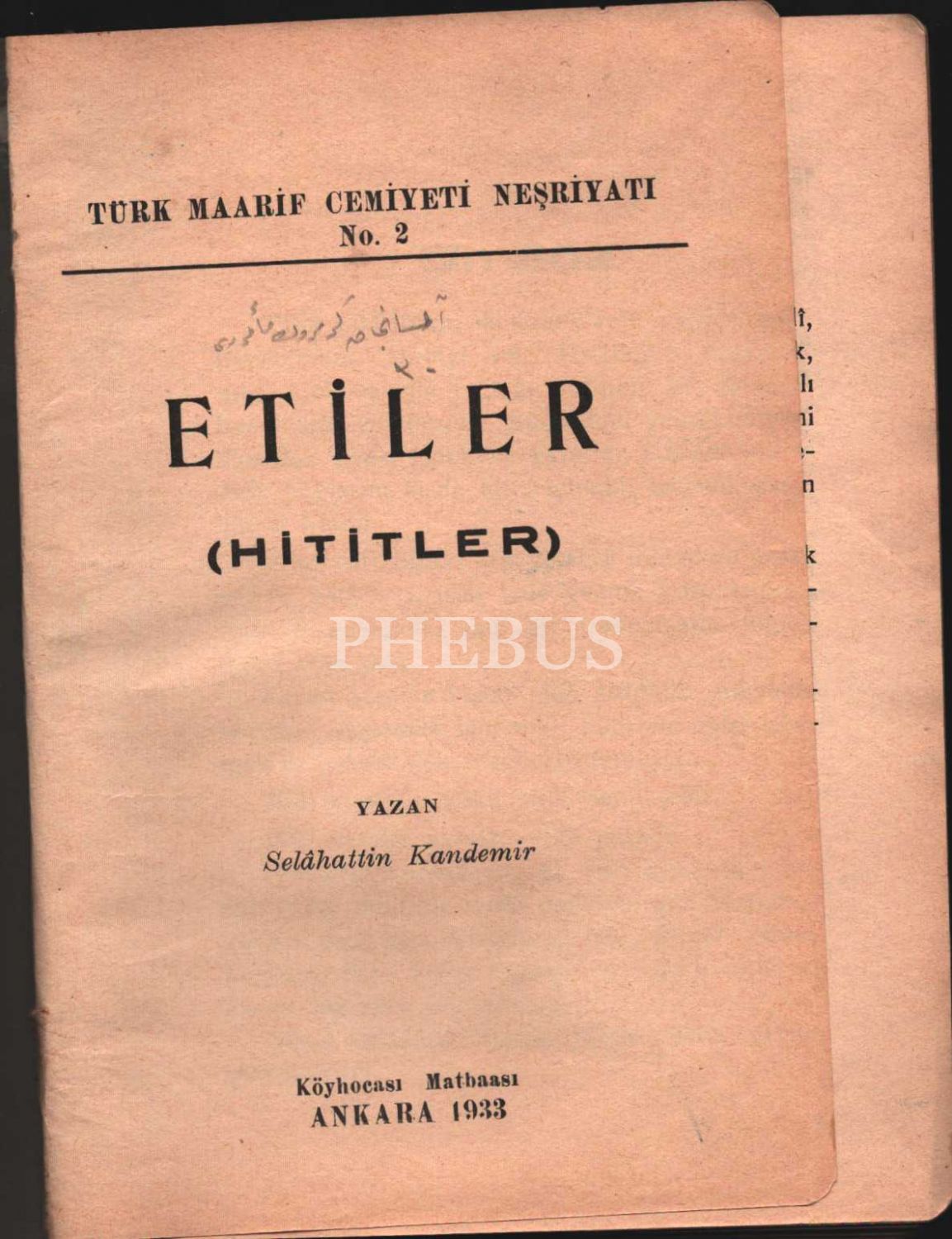 ETİLER (HİTİTLER), Selâhattin Kandemir, Türk Maarif Cemiyeti Neşriyatı, 1933