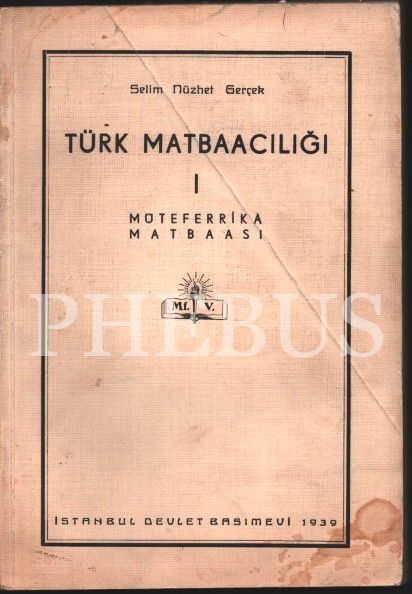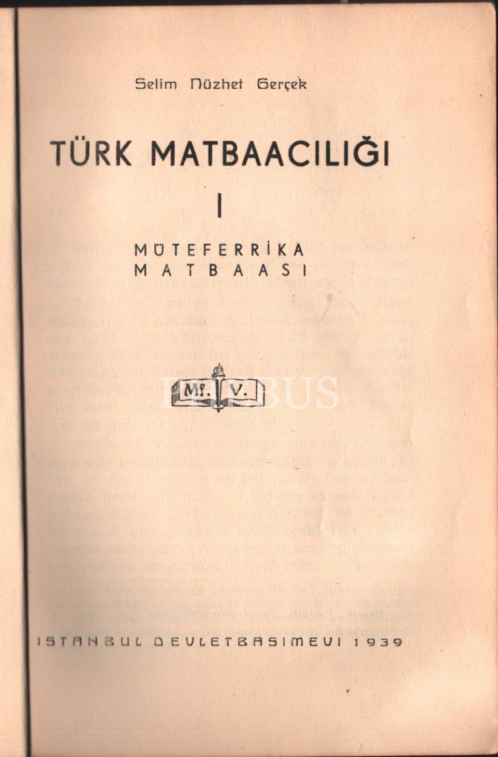 TÜRK MATBAACILIĞI I: MÜTEFERRİKA MATBAASI, Selim Nüzhet Gerçek, Devlet Basımevi, 1939