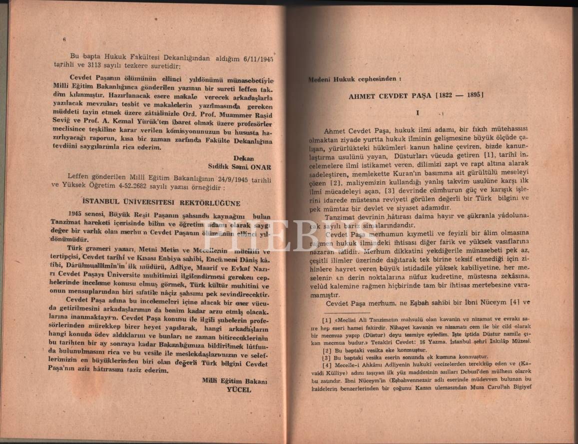 Yazarı Osmanlı ve Cumhuriyet dönemi hukukçusu Ebul´ulâ Mardin'den ithaflı ve imzalı MEDENÎ HUKUK CEPHESİNDEN AHMET CEVDET PAŞA, Cumhuriyet Matbaası, 1946