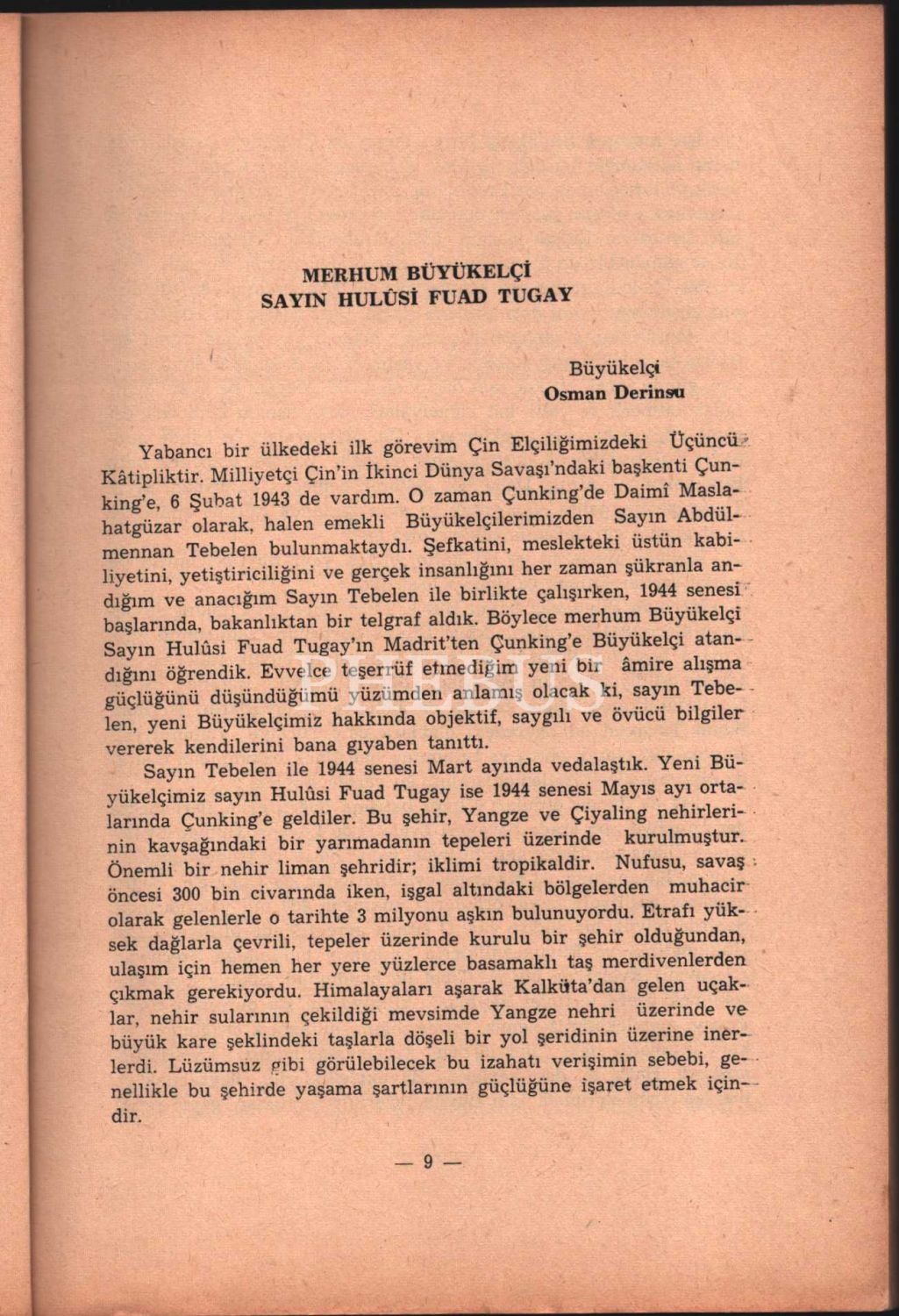 BÜYÜKELÇİ DR. A. HULÛSİ FUAD TUGAY, Prof. Dr. Bedi N. Şehsuvaroğlu, Hüsnitabiat Matbaası, 1972