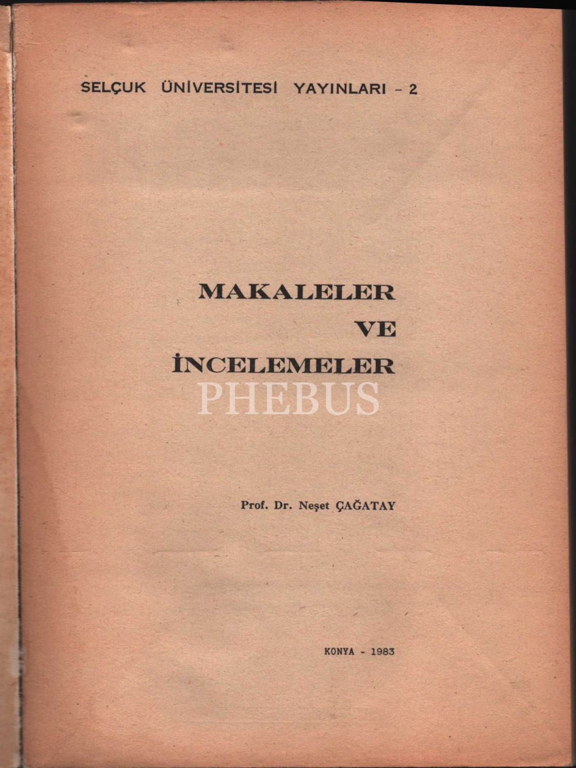 MAKALELER VE İNCELEMELER, Prof. Dr. Neşet Çağatay, Selçuk Üniversitesi Yayınları, 1983