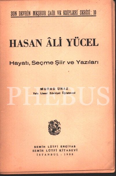 HASAN ÂLİ YÜCEL (Hayatı, Seçme Şiir ve Yazıları), Murad Uraz, Semih Lütfi Kitabevi, 1938