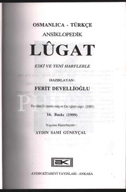 OSMANLICA-TÜRKÇE ANSİKLOPEDİK LÛGAT, Ferit Devellioğlu, Aydın Kitabevi Yayınları, 1999