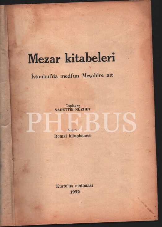 İSTANBUL´DA MEDFUN MEŞAHİRE AİT MEZAR KİTABELERİ, Sadettin Nüzhet, Kurtuluş Matbaası, 1932