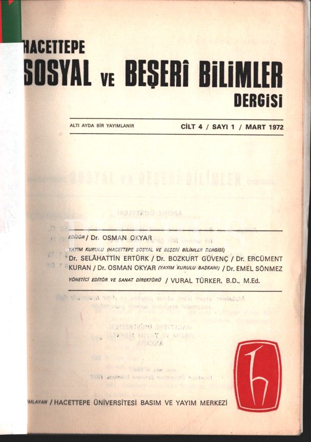 HACETTEPE SOSYAL VE BEŞERİ BİLİMLER DERGİSİ (4. Cilt 1. Sayı), Hacettepe Üniversitesi Basım ve Yayım Merkezi, 1972