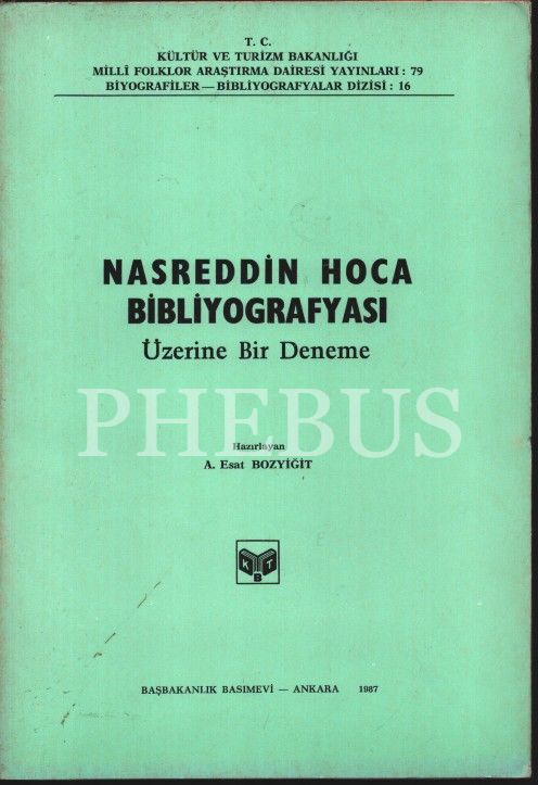 NASRETTİN HOCA BİBLİYOGRAFYASI Üzerine Bir Deneme, A. Esat Bozyiğit, Başbakanlık Basımevi, 1987
