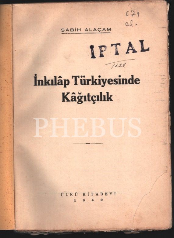 İNKILÂP TÜRKİYESİNDE KÂĞITÇILIK, Sabih Alaçam, Ülkü Kitabevi, 1940