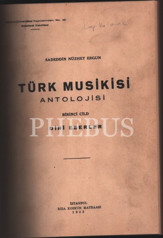 TÜRK MUSİKİSİ ANTOLOJİSİ (2 cilt bir arada), Rıza Koşkun Matbaası, 1943