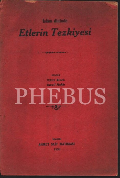 İSLAM DİNİNDE ETLERİN TEZKİYESİ, Dr. Milaslı İsmail Hakkı, Ahmet Sait Matbaası, 1933