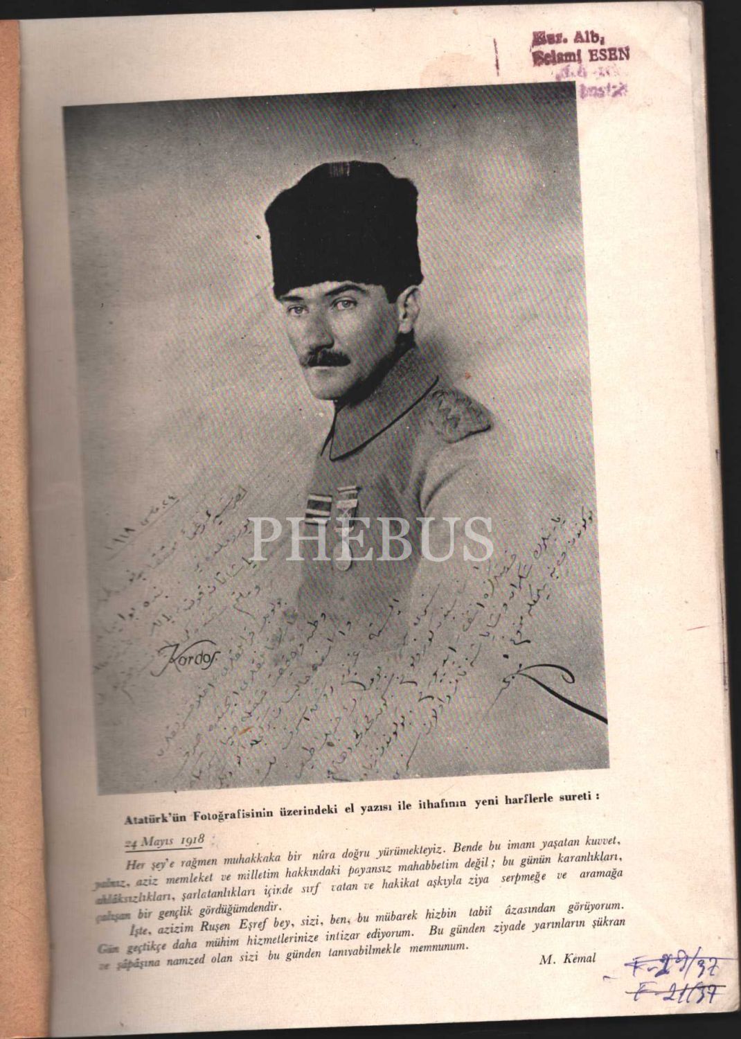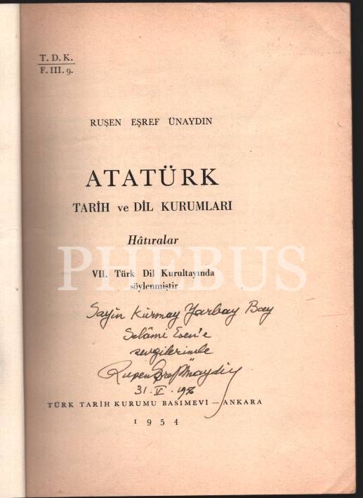İthaf, "Sayın Kurmay Yarbay Bay Selâmi Esen'e sevgilerimle - Ruşen Eşref Ünaydın" şeklindedir.