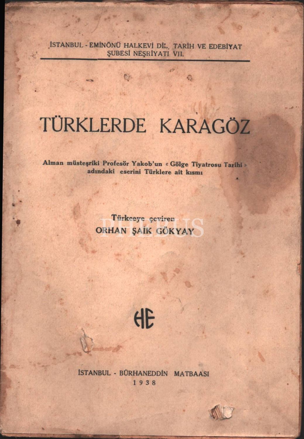 TÜRKLERDE KARAGÖZ, çev. Orhan Şaik Gökyay, Bürhanettin Matbaası, 1938