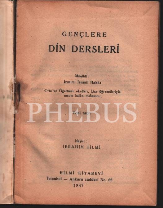 GENÇLERE DİN DERSLERİ, İzmirli İsmail Hakkı, Hilmi Kitabevi, 1947