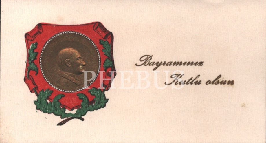 1935 tarihli ve gofre Atatürk görselli bayram tebrik kartı