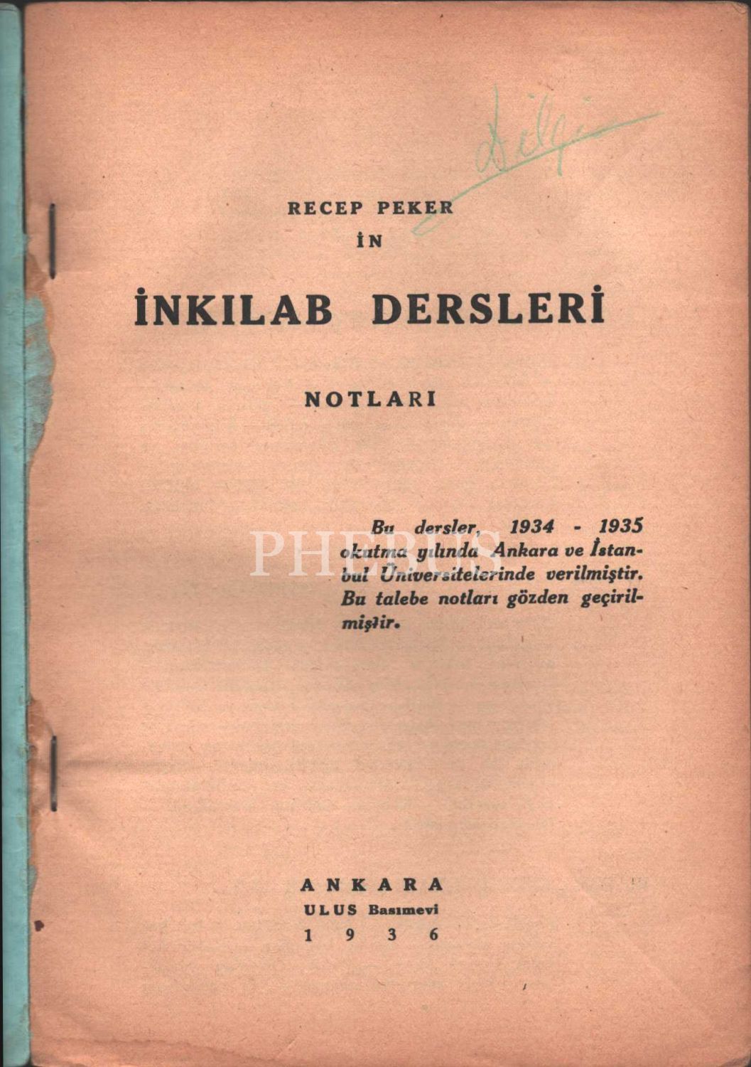 Recep Peker'in İNKILAB DERSLERİ NOTLARI, Ulus Basımevi, 1936