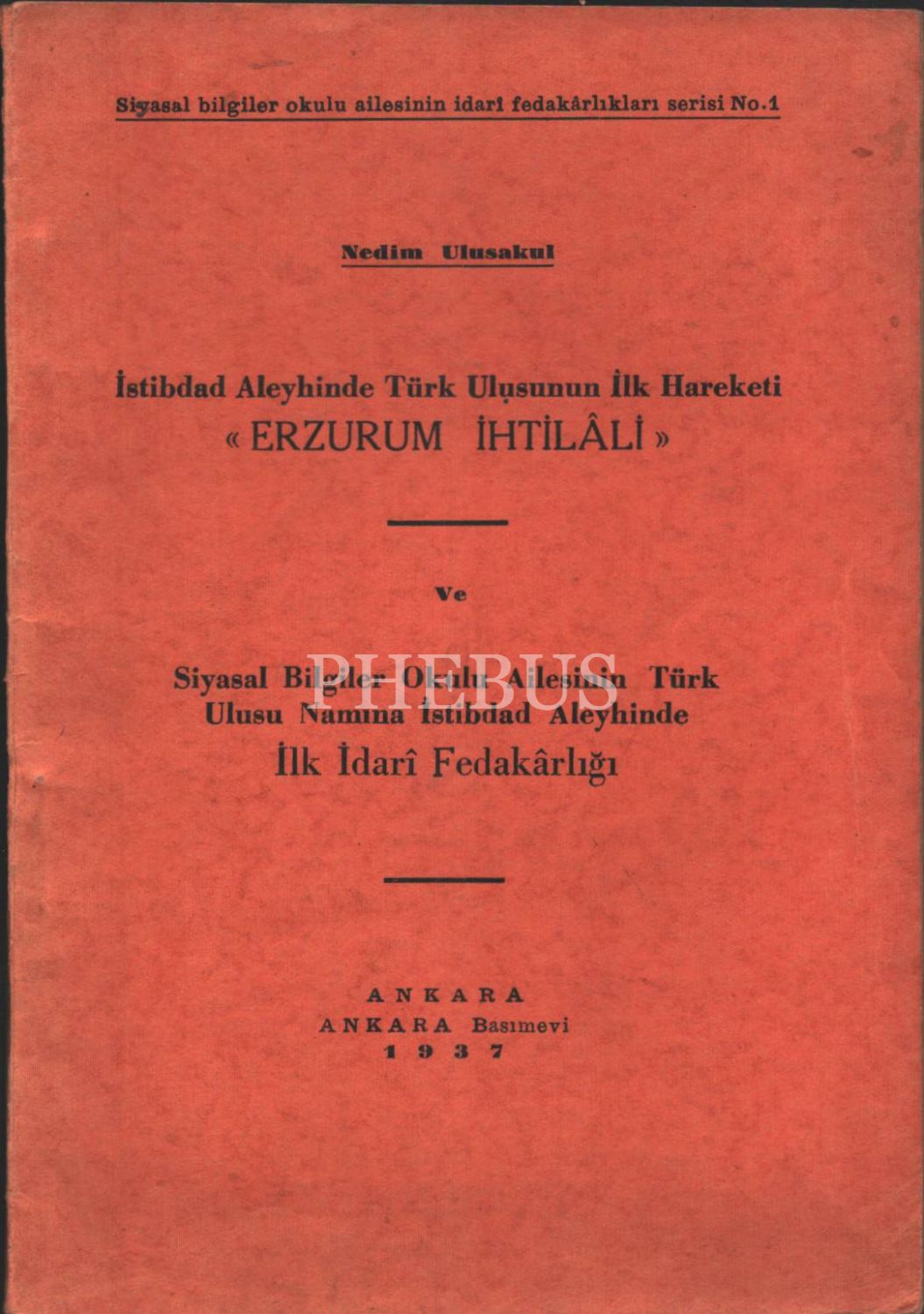 İSTİBDAD ALEYHİNDE TÜRK ULUSUNUN İLK HAREKETİ "ERZURUM İHTİLÂLİ", Ankara Basımevi, 1937