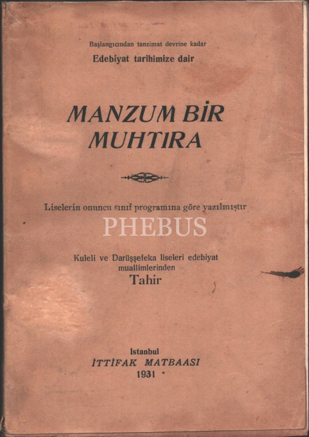 MANZUM BİR MUHTIRA, Tahir, İttifak Matbaası, 1931