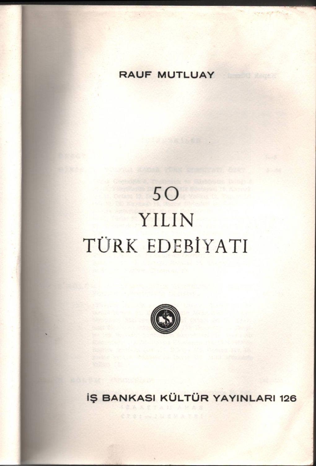 50 YILIN TÜRK EDEBİYATI, Rauf Mutluay, Türkiye İş Bankası Kültür Yayınları, 1973