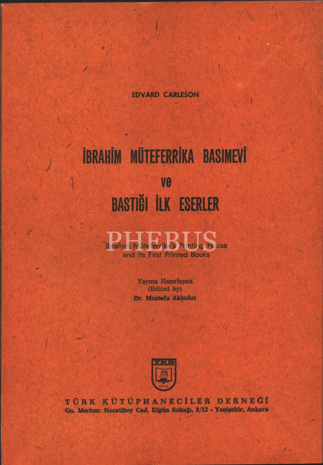İBRAHİM MÜTEFERRİKA BASIMEVİ VE BASTIĞI İLK ESERLER, Edvard Carleson, Türk Kütüphaneciler Derneği, 1979
