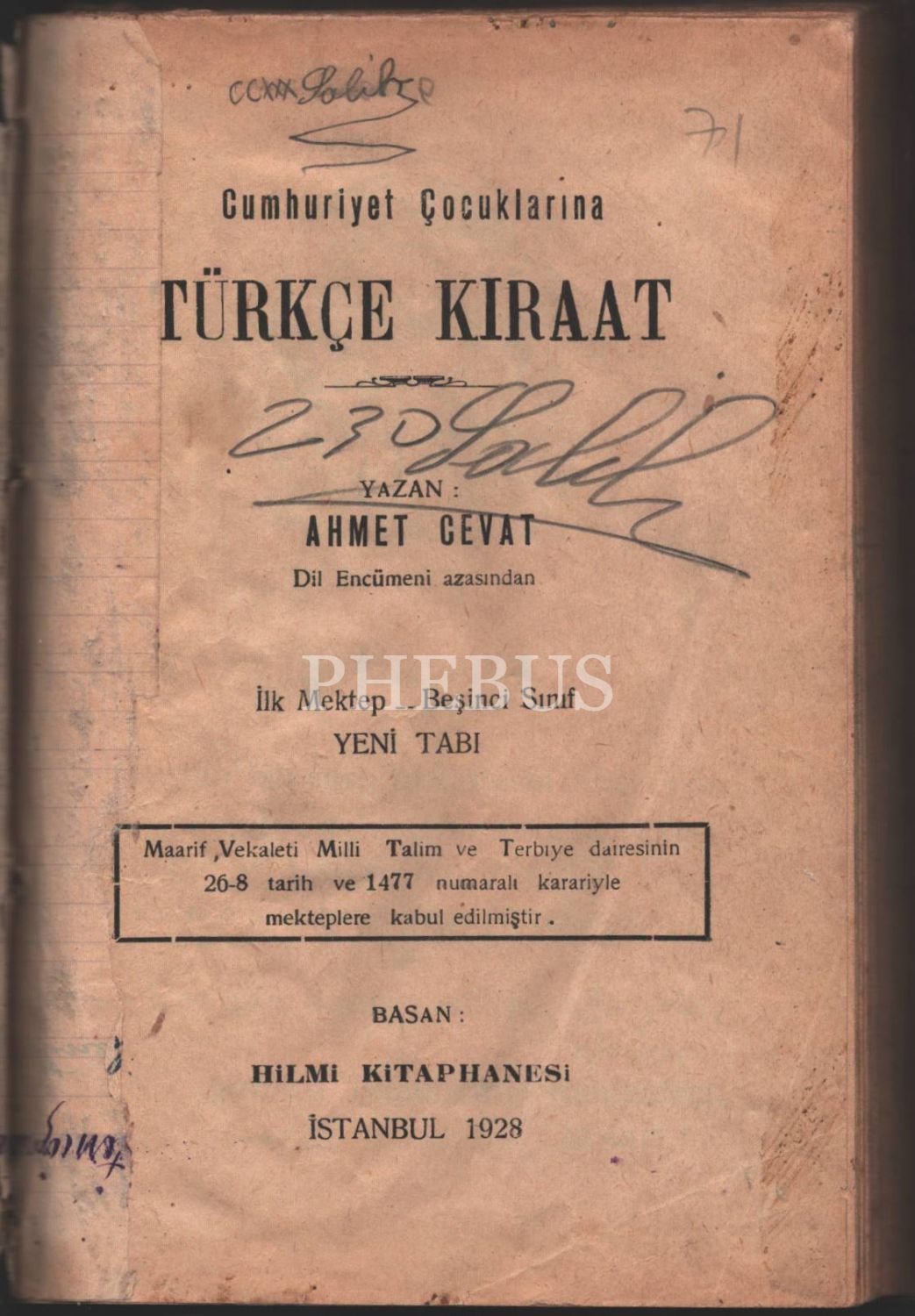 CUMHURİYET ÇOCUKLARINA TÜRKÇE KIRAAT, Ahmet Cevat, Hilmi Kitaphanesi, 1928