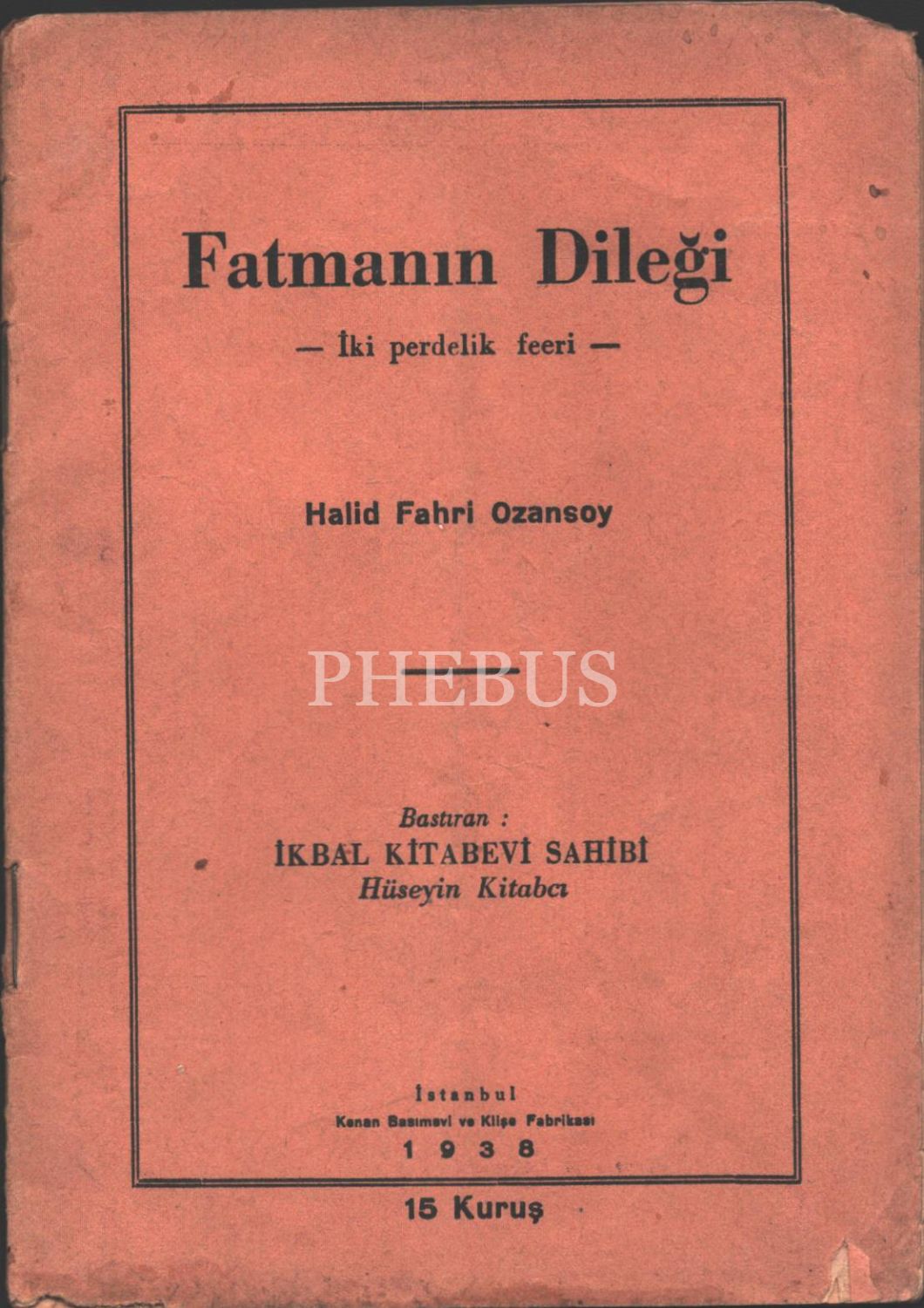 FATMANIN DİLEĞİ (İki Perdelik Feeri), Halid Fahri Ozansoy, Kenan Basımevi, 1938