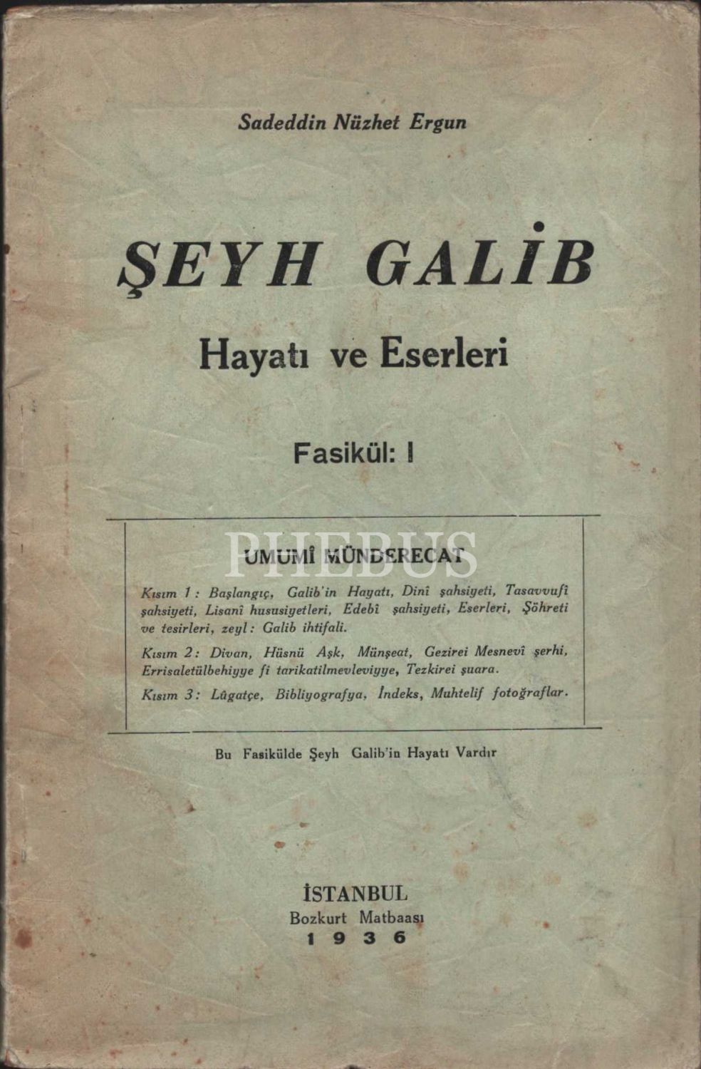 ŞEYH GALİB HAYATI VE ESERLERİ, Sadettin Nüzhet Ergun, Bozkurt Matbaası, 1936