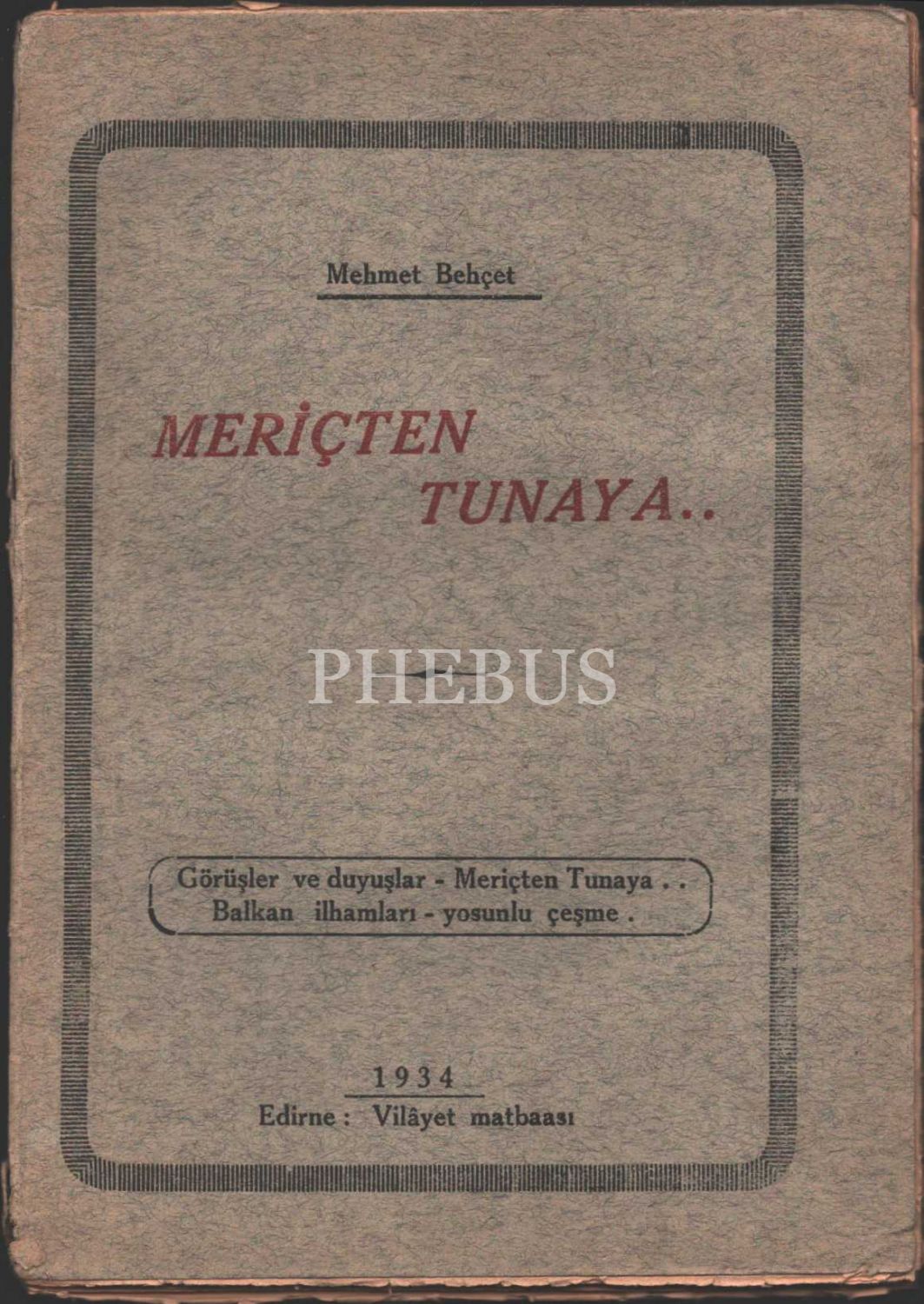 MERİÇTEN TUNAYA, Mehmet Behçet, Edirne Vilayet Matbaası, 1934