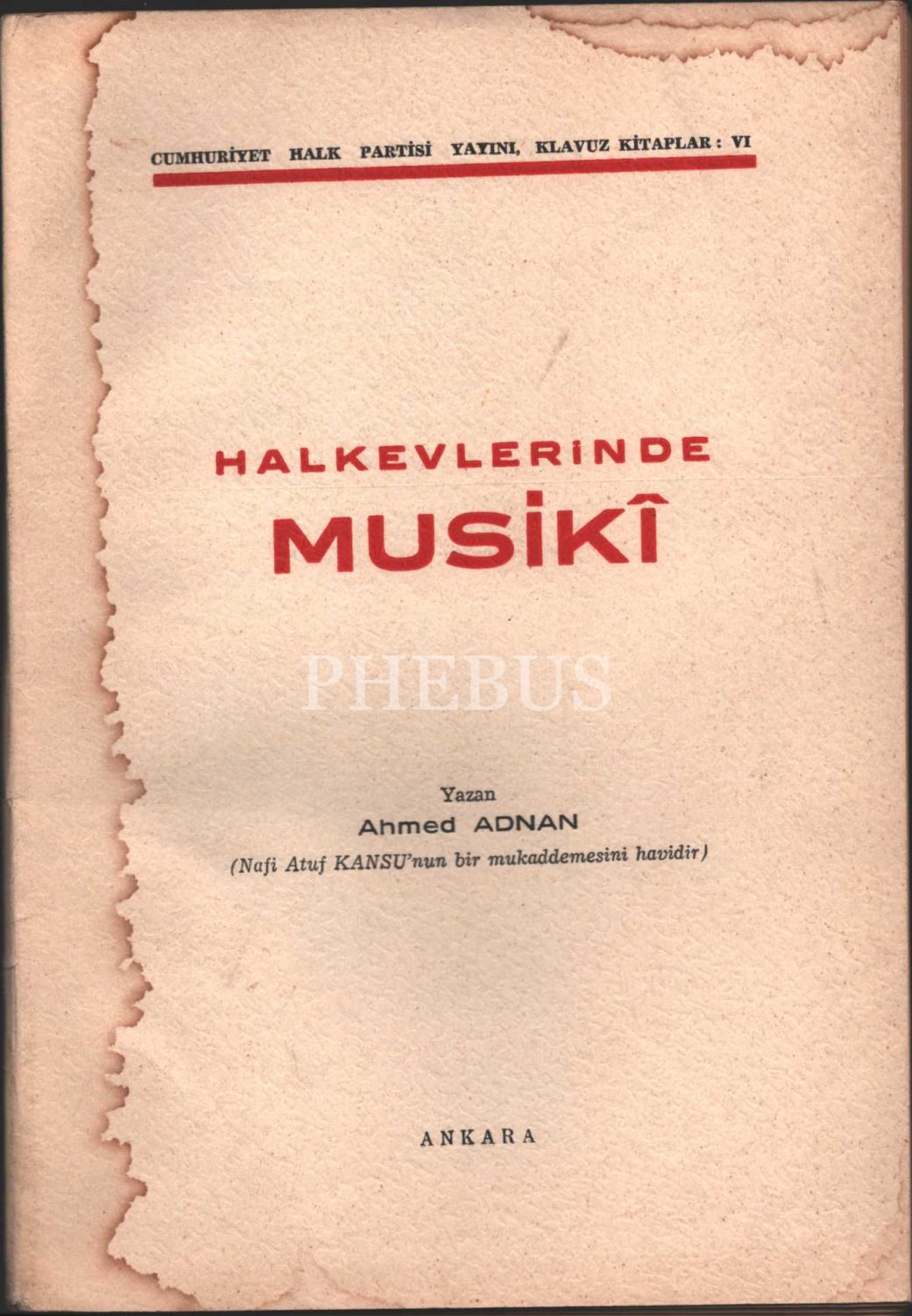 HALKEVLERİNDE MUSİKÎ, Ahmed Adnan, Cumhuriyet Halk Partisi Yayını, 1939