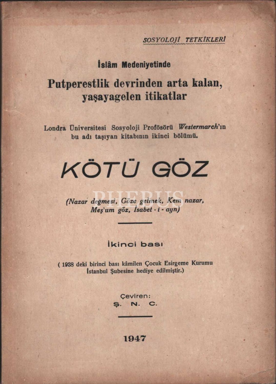 KÖTÜ GÖZ, çev. Ş.N.C. Marifet Basımevi, 1947