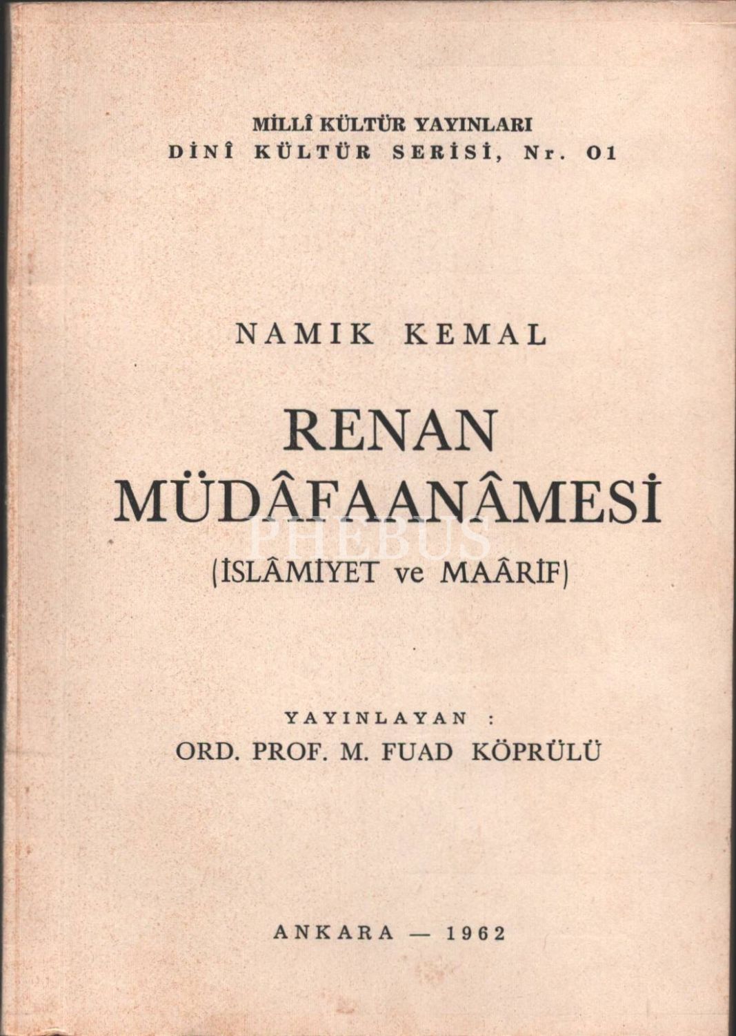NAMIK KEMAL- RENAN MÜDÂFAANÂMESİ, yay. M. Fuad Köprülü, Milli Kültür Yayınları, 1962