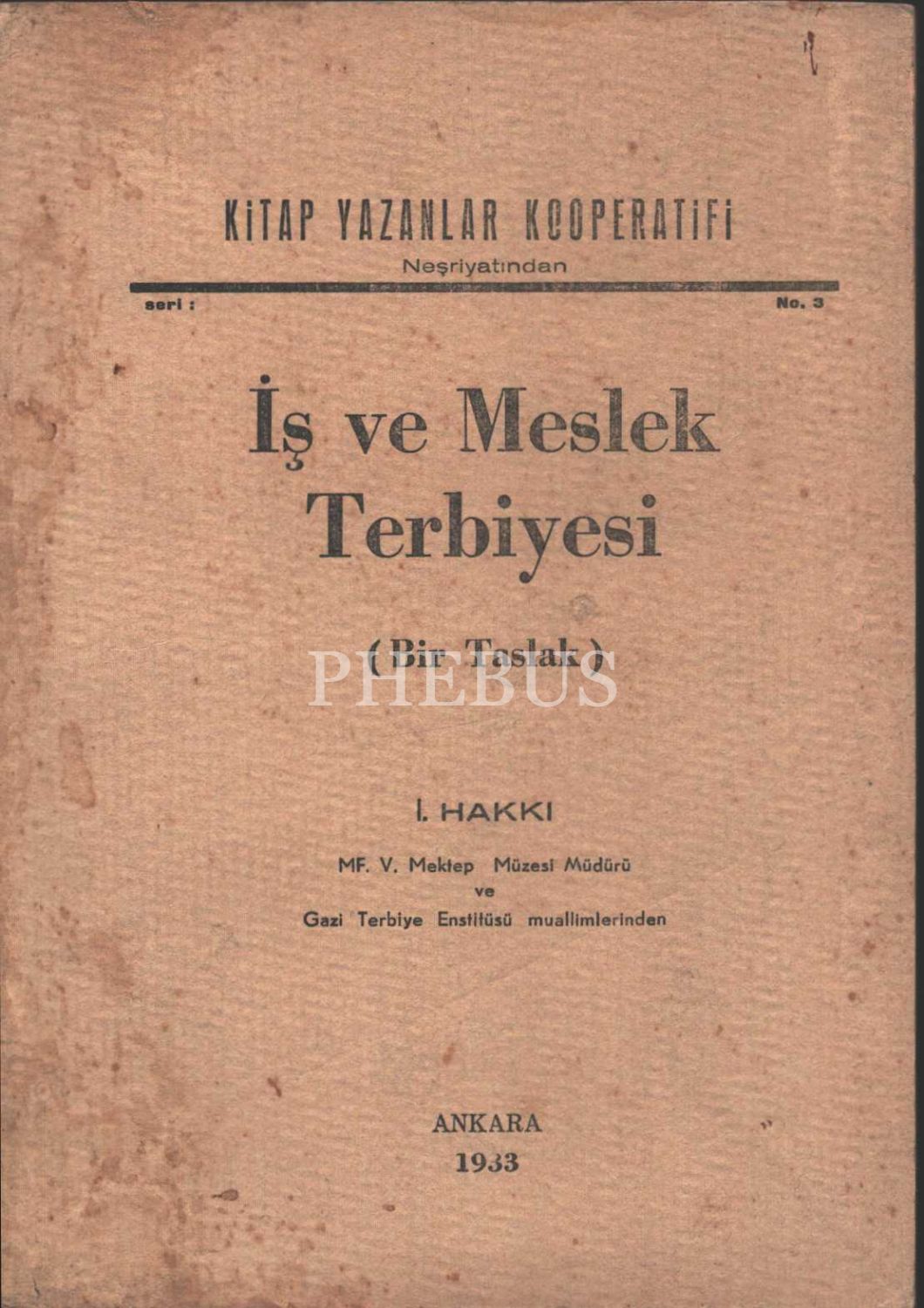 İŞ VE MESLEK TERBİYESİ, İ. Hakkı, Kitap Yazanlar Kooperatifi Neşriyatı, 1933