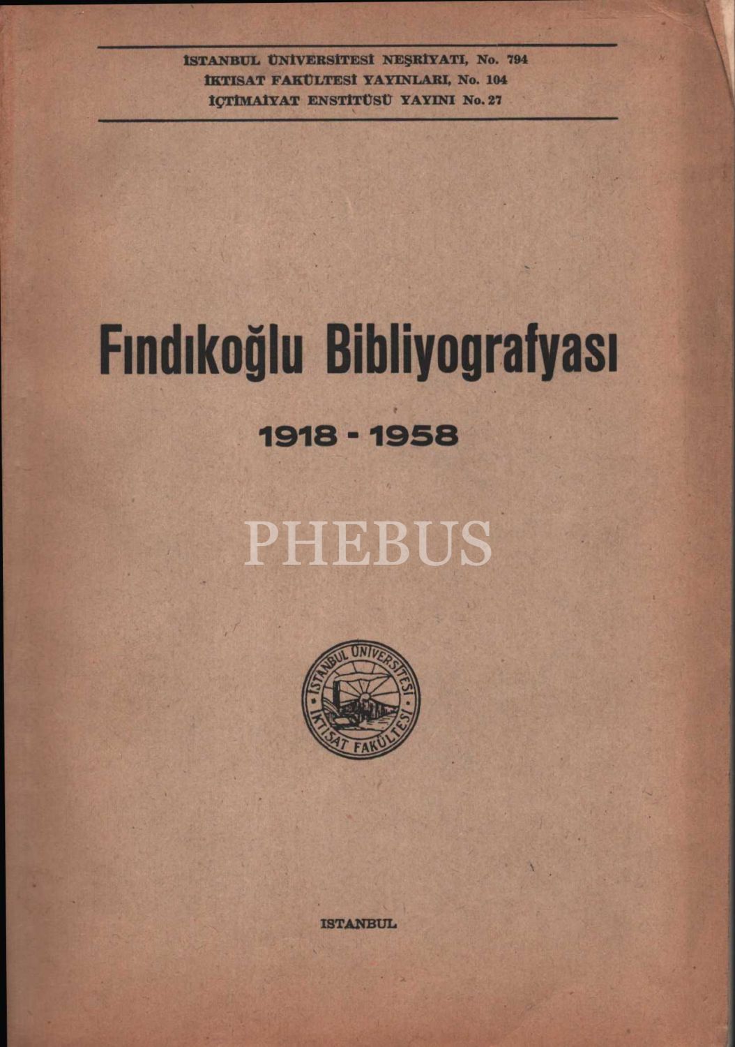 FINDIKOĞLU BİBLİYOGRAFYASI (1918-1958), İstanbul Üniversitesi Yayınları