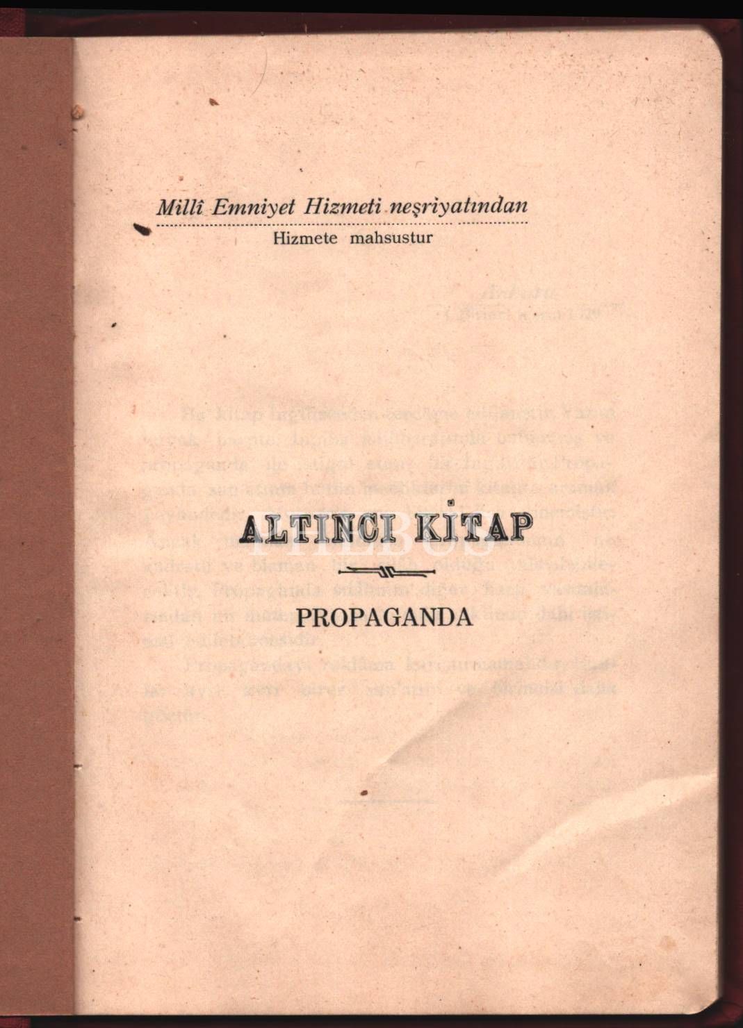 Milli Emniyet Hizmeti Neşriyatından ALTINCI KİTAP PROPAGANDA, Ankara 1929, 106 s., 12x18 cm