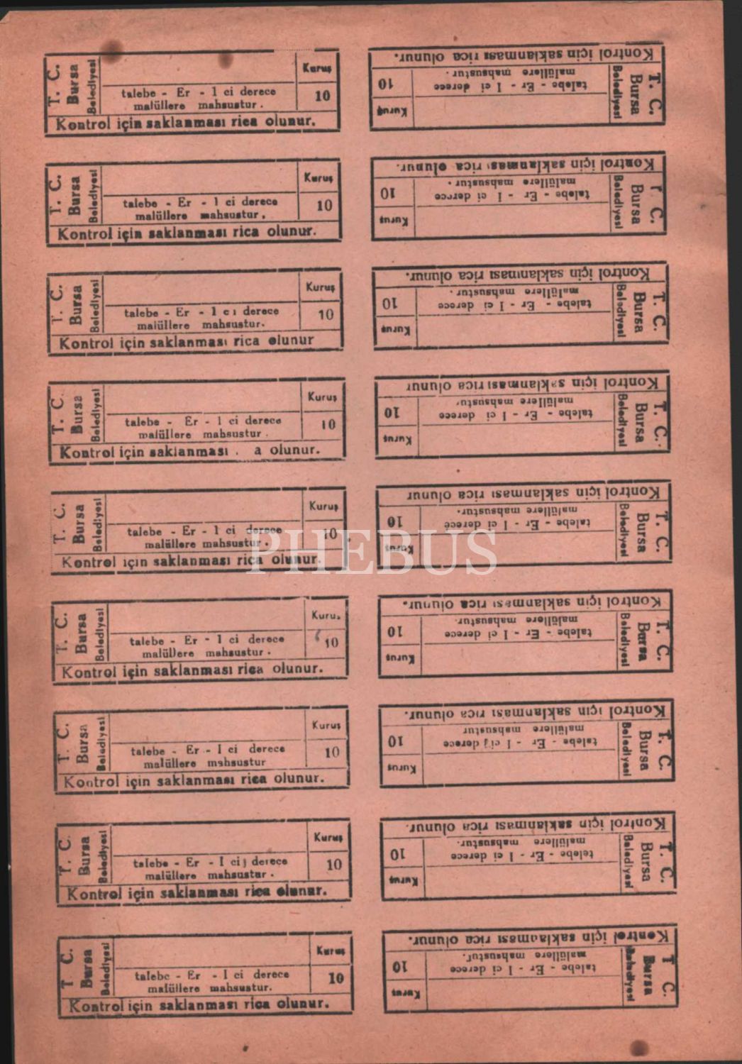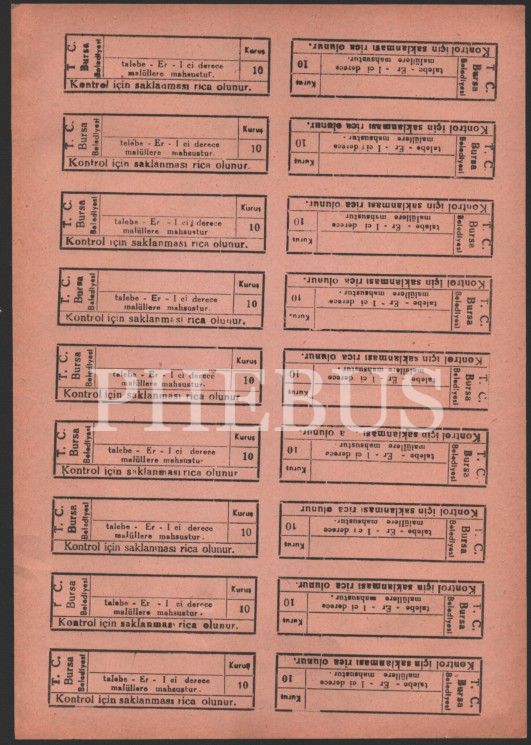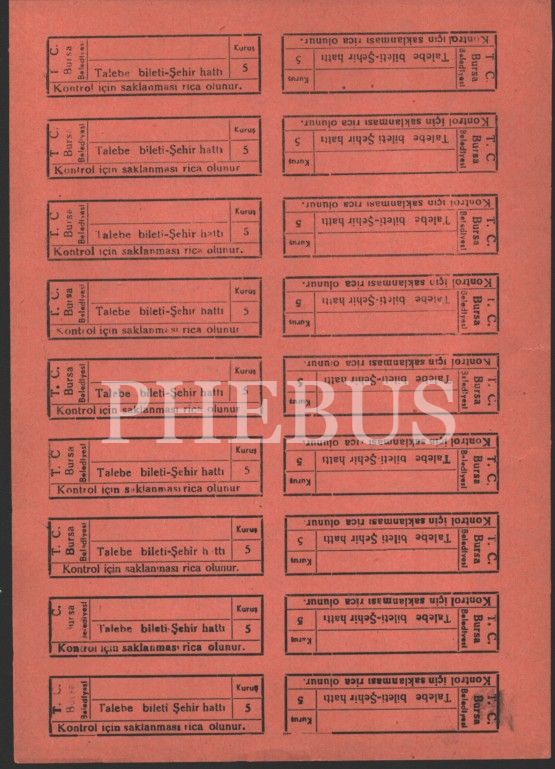 Bursa için biletler (4 sayfa), 17x25 cm