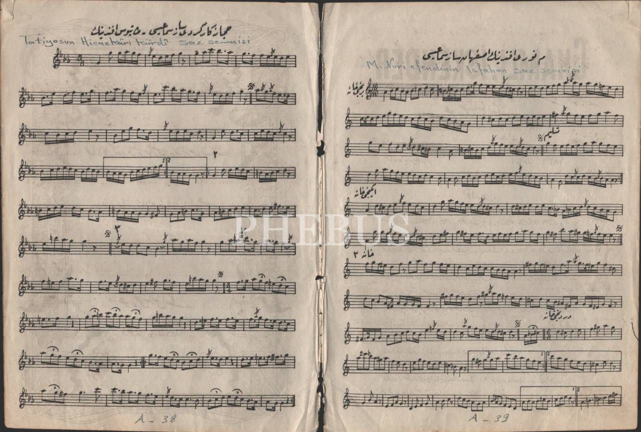 Müzik tarihi: Tatyos Efendi´ye ait Hicazkâr Kürdi Saz Semaisi, Udcu Şamlı İskender- İstanbul, 19x26 cm