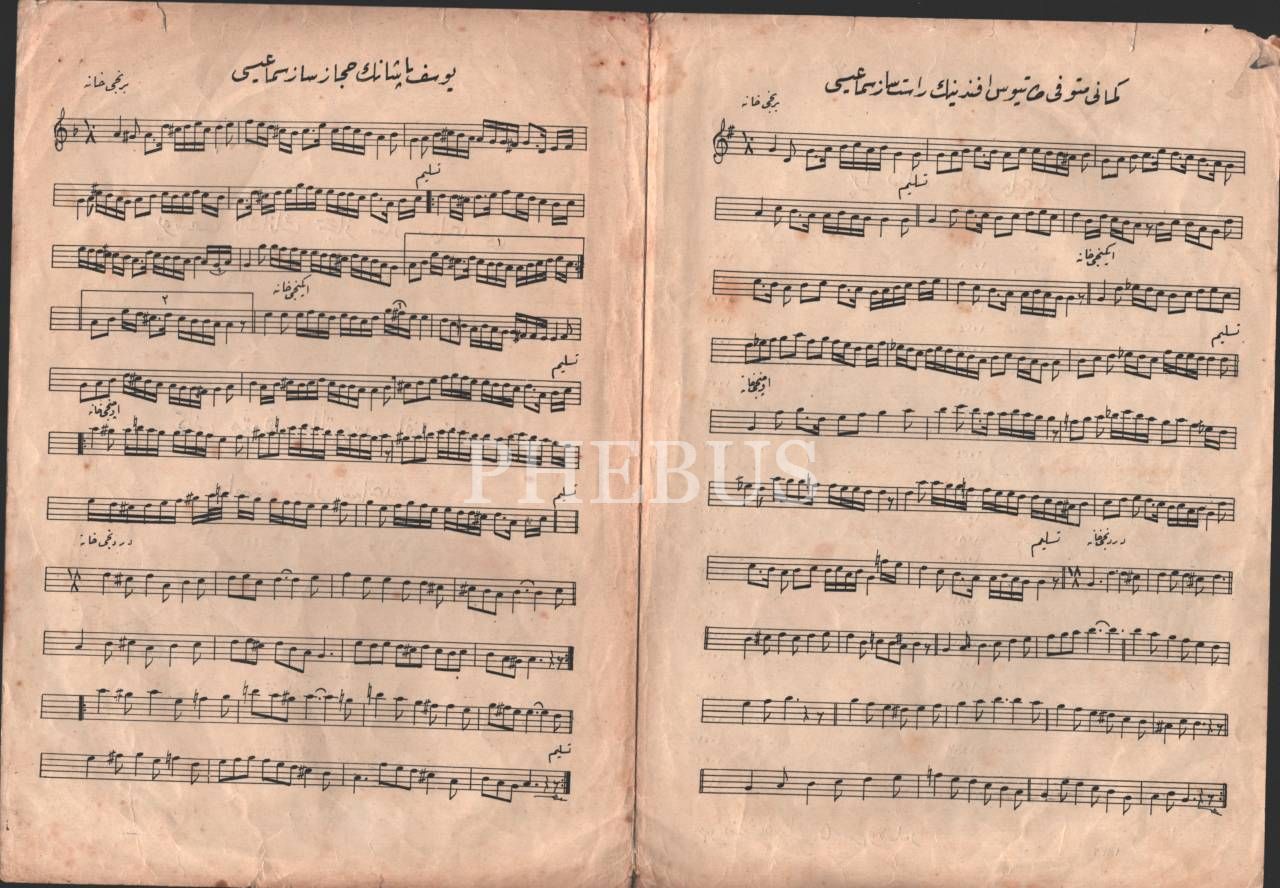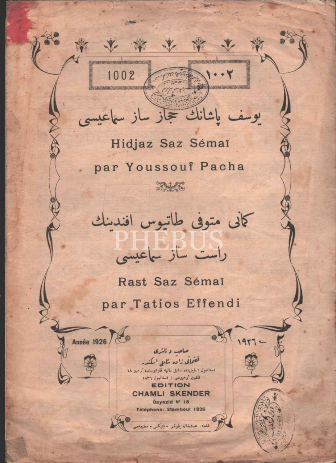 Müzik tarihi: Yusuf Paşa´nın Hicaz Saz Semaisi ile Kemani Tatyos Efendi´nin Rast Saz Semaisi, Kudmanizade Şamlı İskender- İstanbul 1926, 20x28 cm