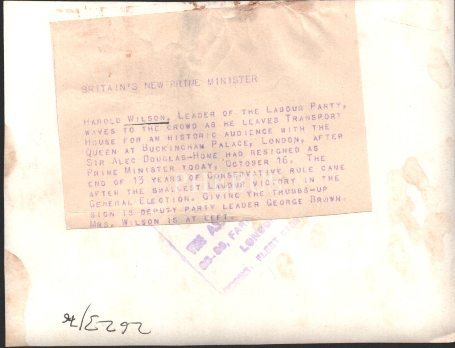 Siyaset tarihi: Britanya Başbakanı Harold Wilson, 14x18 cm
