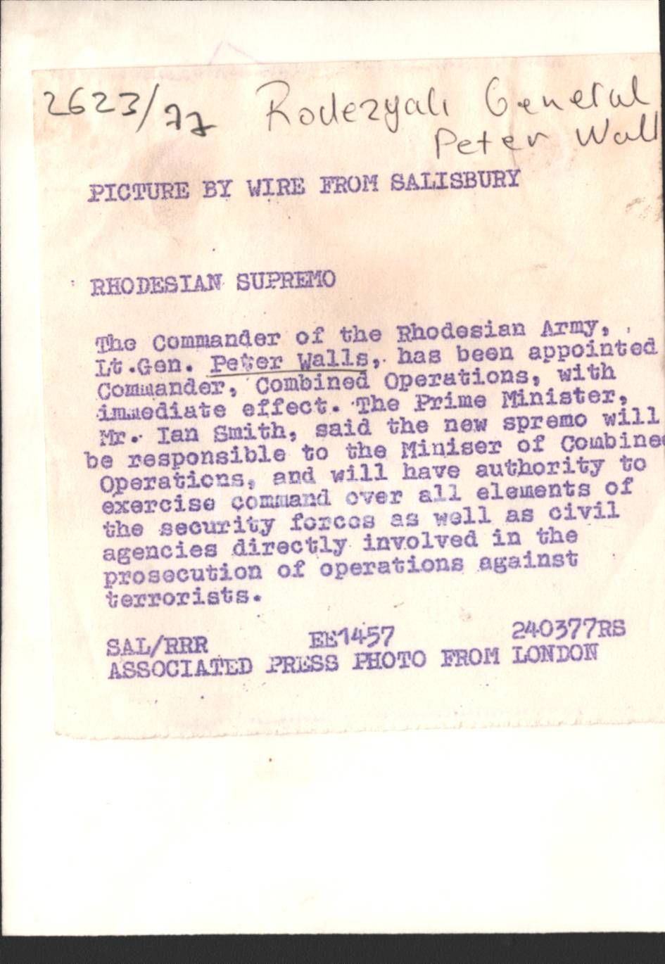 Siyaset tarihi: Rodezyalı General Peter Walls, 11x16 cm
