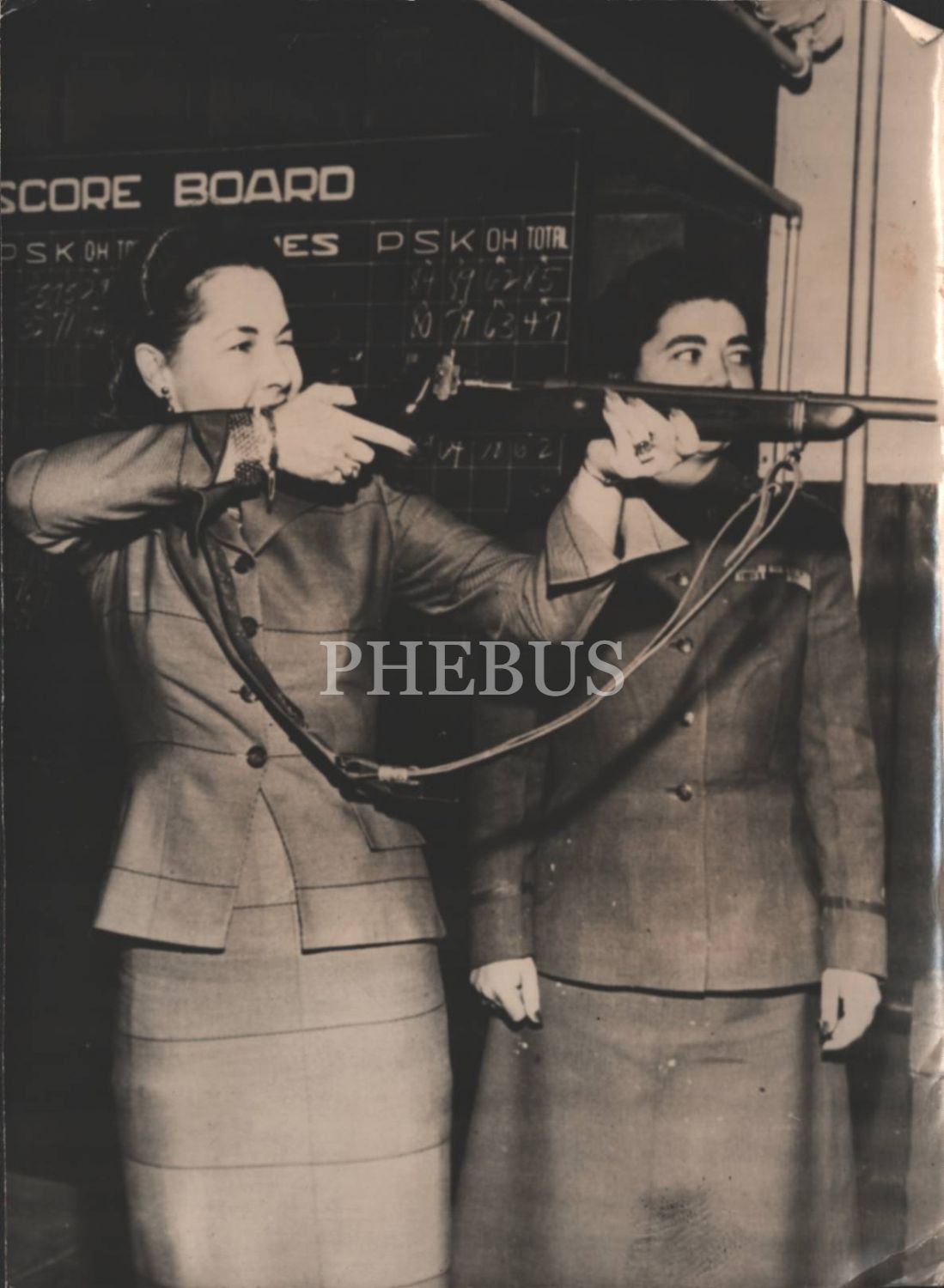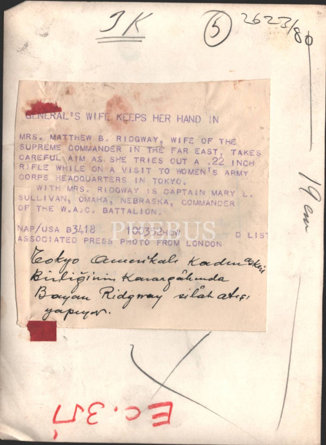Siyasi tarih: Tokyo Kadın Askeri Birliği´nin karargâhında bayan Ridgway silah atışı yaparken, 15x20 cm