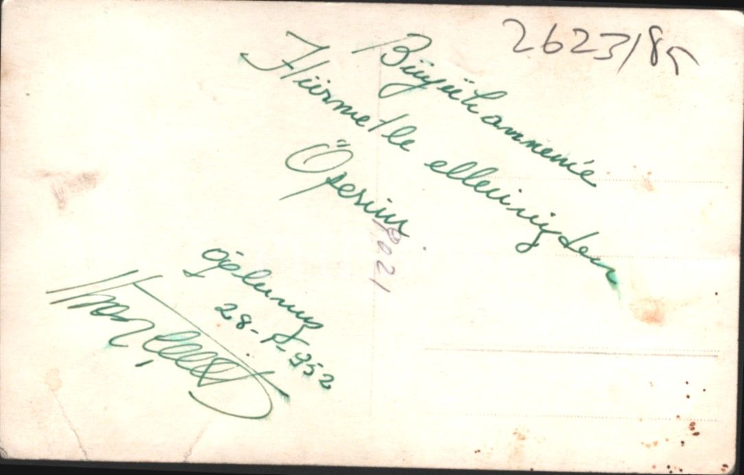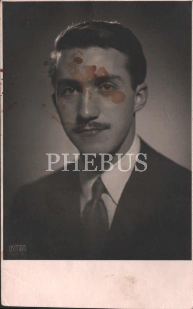Beyefendi hatıra fotoğrafı, ithaflı ve imzalı, 1952, 8x13 cm