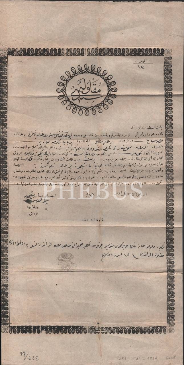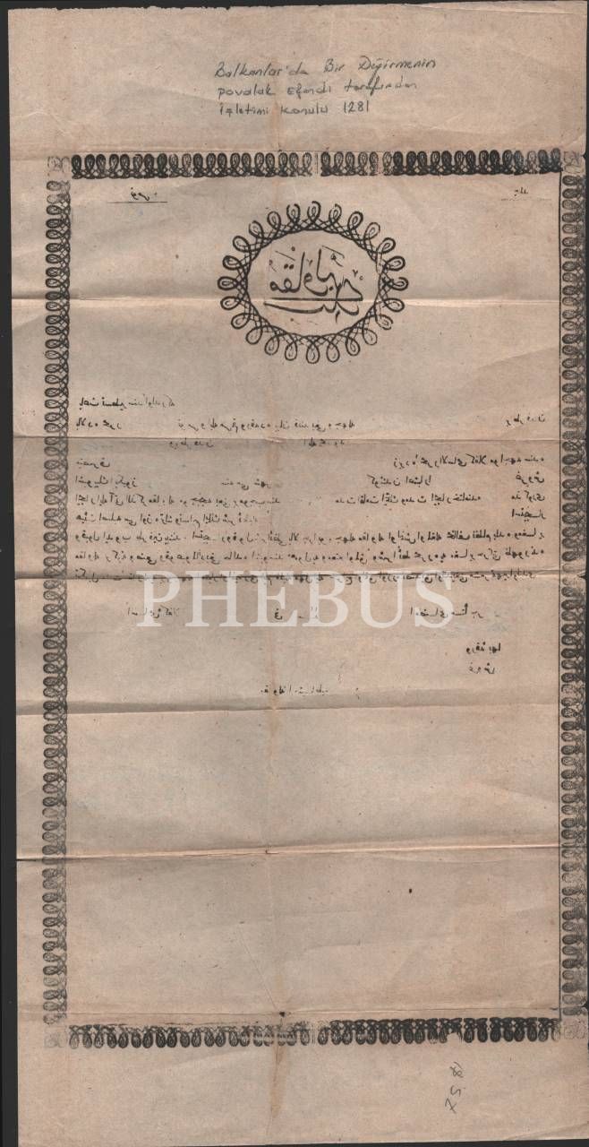 Balkanlarda bir değirmenin işletimi konulu mukavele senedi, 1281 tarihli, 21x41 cm