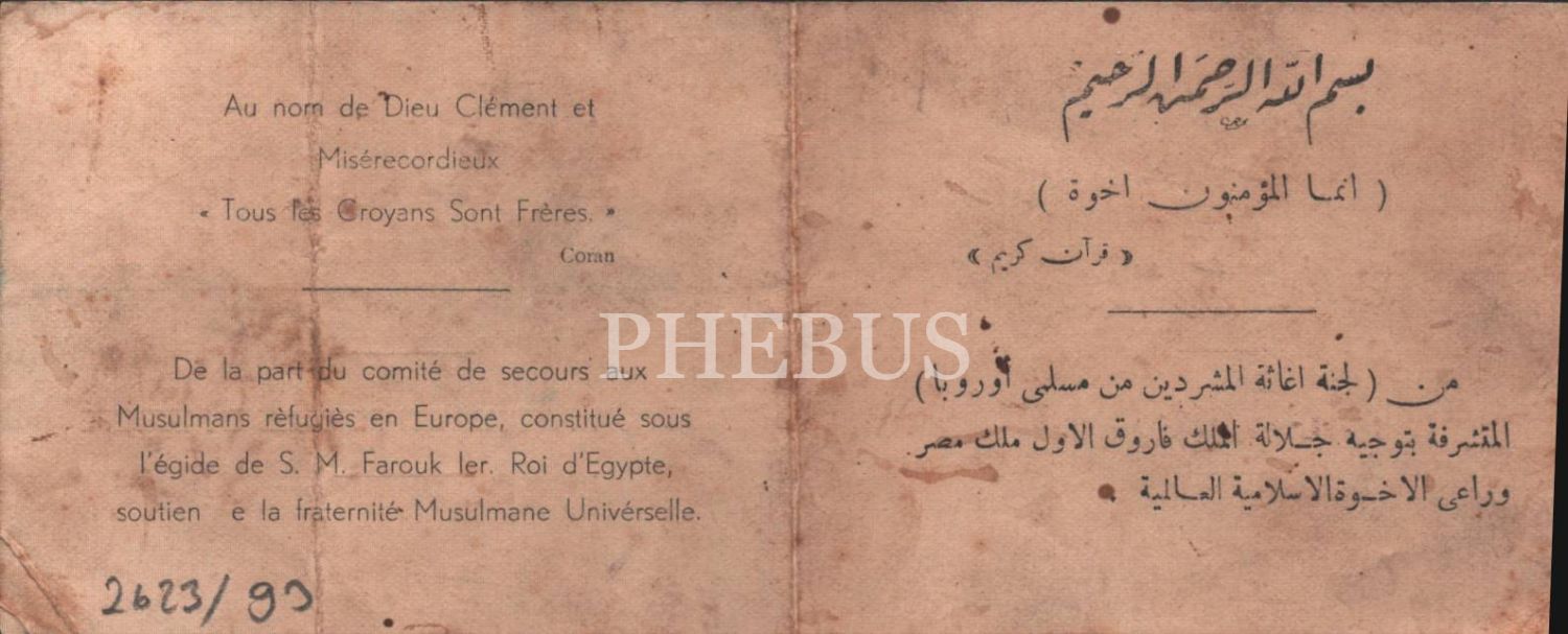 Avrupalı Müslüman mültecilere yardım kartı (Fransızca-Arapça), 8x10 cm
