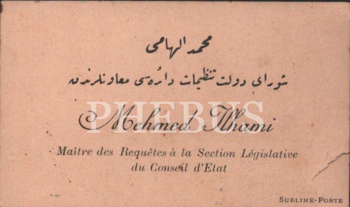 Şura-yı Devlet Tanzimat Dairesi Muavinlerinden Mehmed İlhami Bey´e ait kartvizit