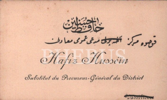 Kosova Merkez Müddei-i Umumi Muavini Hafız Hüseyin Bey´e ait kartvizit