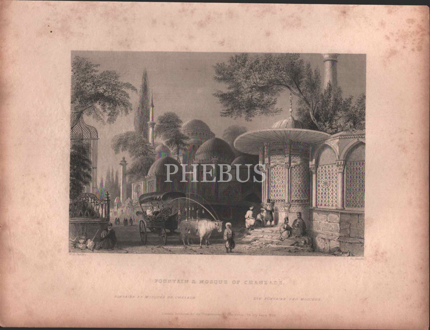 Şehzade Camii gravürü, London 1839, 20x26 cm