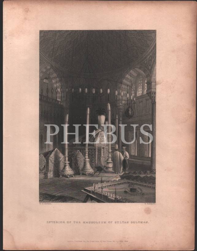 Sultan Süleyman Türbesi gravürü, London 1838, 20x26 cm