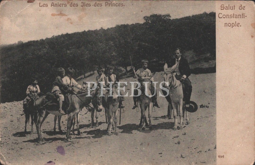 Prens Adası´nda eşek üzerindeki beyefendi ve çocuklar, Constantinople, 8x13 cm