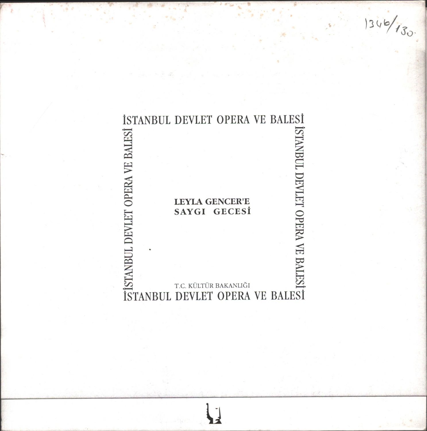 İstanbul Devlet Opera ve Balesi Leyla Gencer´e Saygı Gecesi broşürü, 1993 tarihli, 3 kanatlı, 23x23 cm