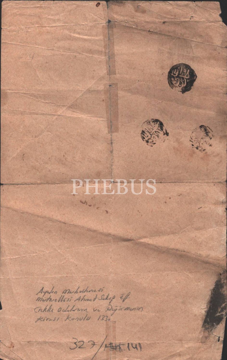 Aydın Mevlevihanesi´ndeki tekke odaları ve değirmen kirasına ilişkin 1330 tarihli fatura, 13x21 cm