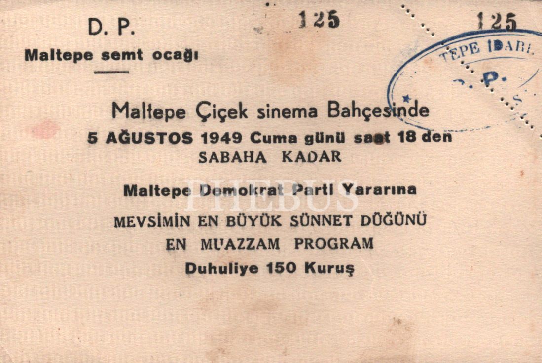 D.P. Maltepe Semt Ocağı toplu sünnet düğünü davetiyesi, 10x15 cm